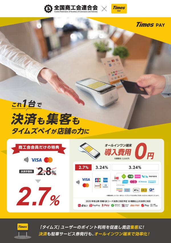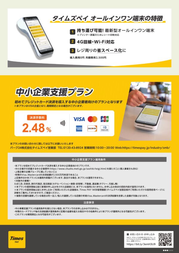 タイムズペイ オールインワン端末(キャッシュレス決済端末)のご案内