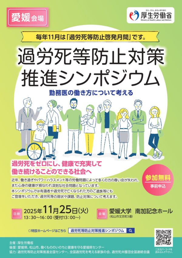 厚生労働省では、毎年11月を「過労死等防止啓発月間」と定め、シンポジウムを開催するとともに、関連施策の普及を図っています。