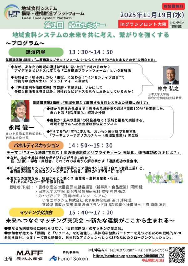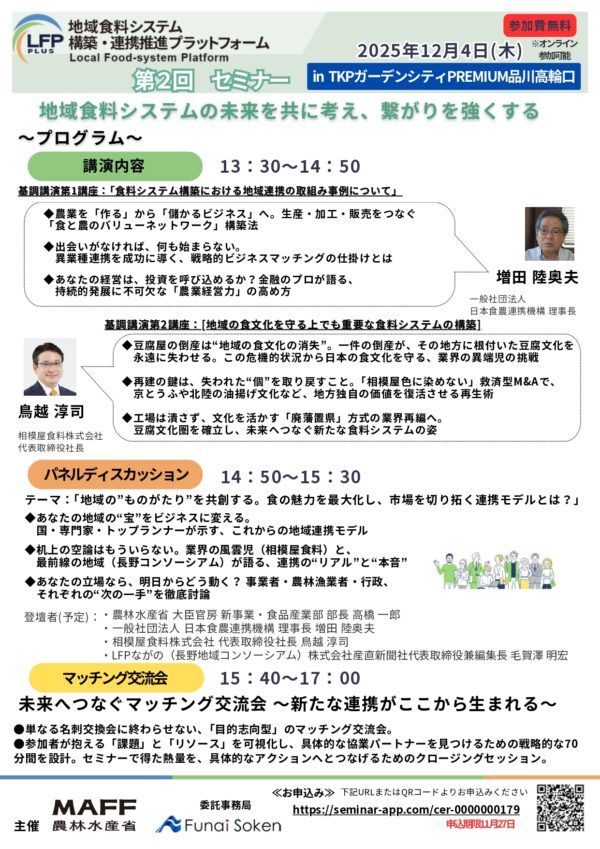 地域食料システム構築・連携推進プラットフォームに係る第1回設立セミナー及び第2回セミナーの開催について