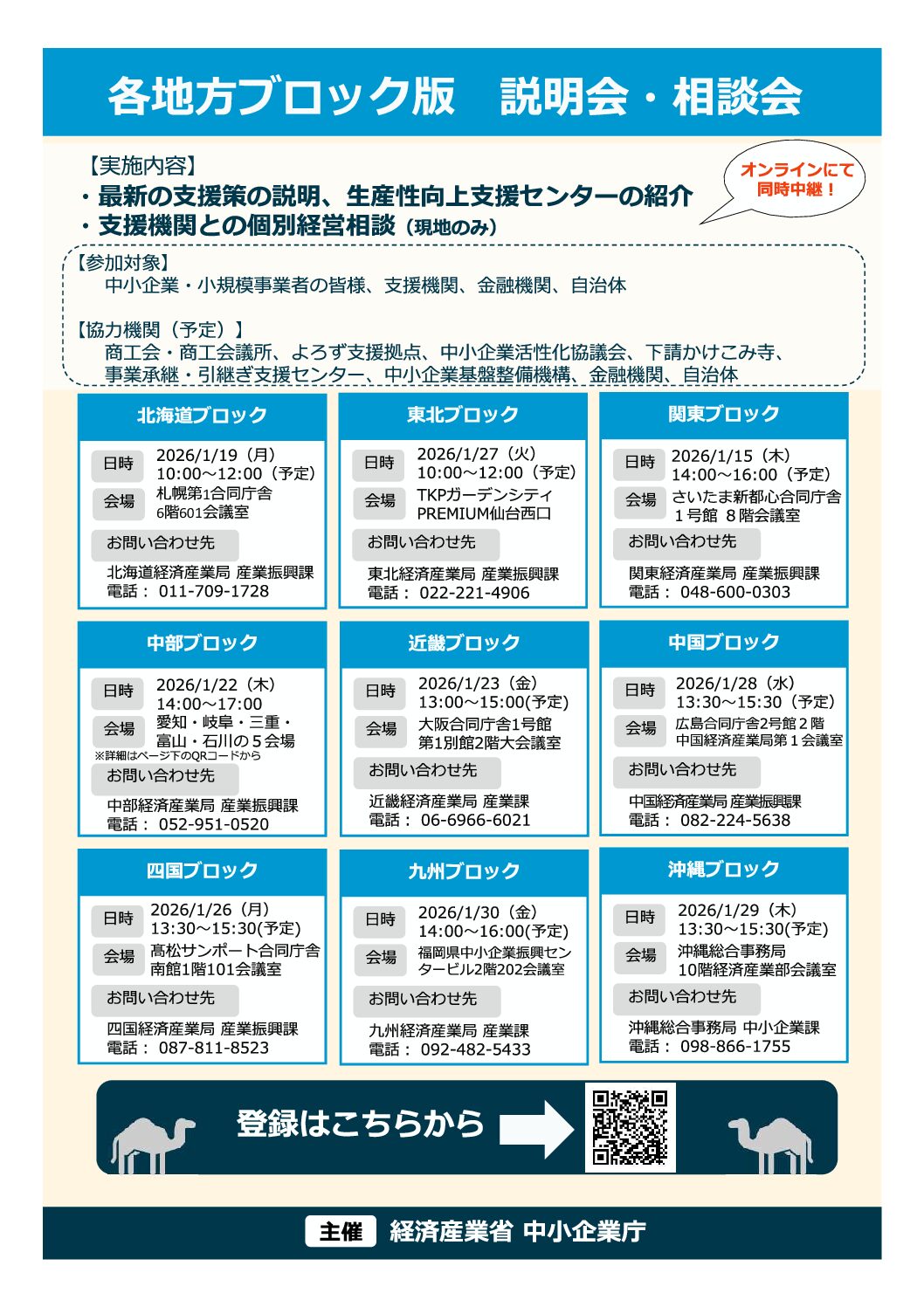 経済産業省では、中小企業・小規模事業者の賃上げ支援のため、全国9ブロックにてキャラバンイベント(個別相談会含む)を実施します。