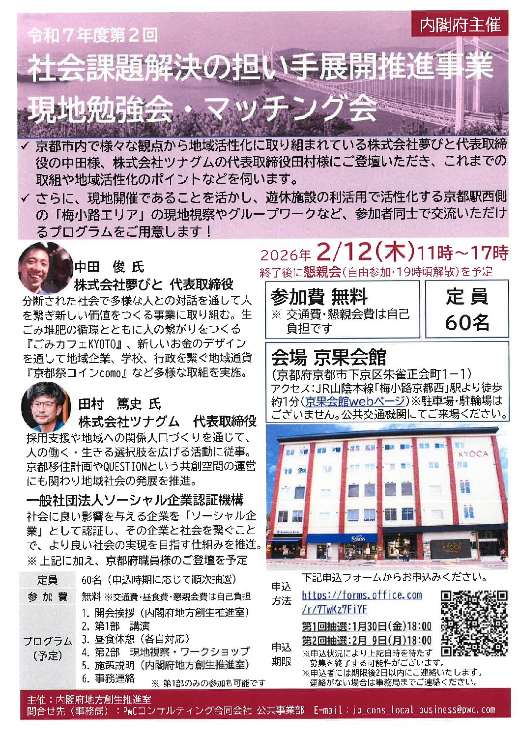 令和7年度第2回「社会課題解決の担い手展開推進事業 現地勉強会・マッチング会」の開催について