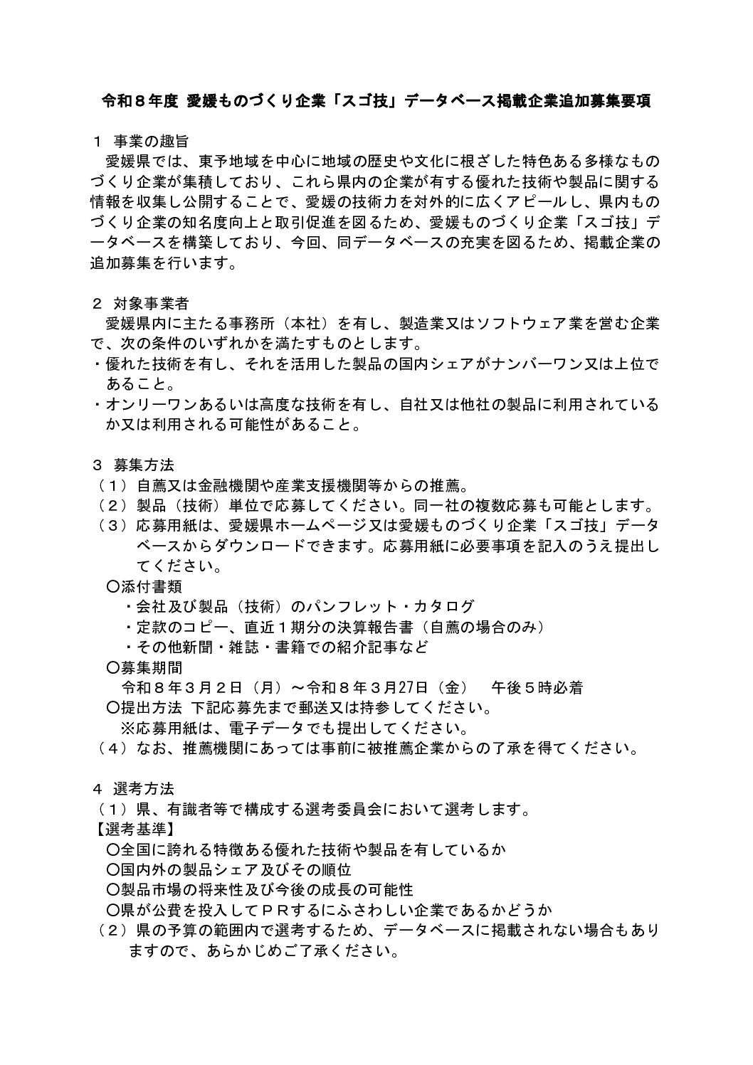 愛媛ものづくり企業「スゴ技」データベースの掲載企業追加募集について