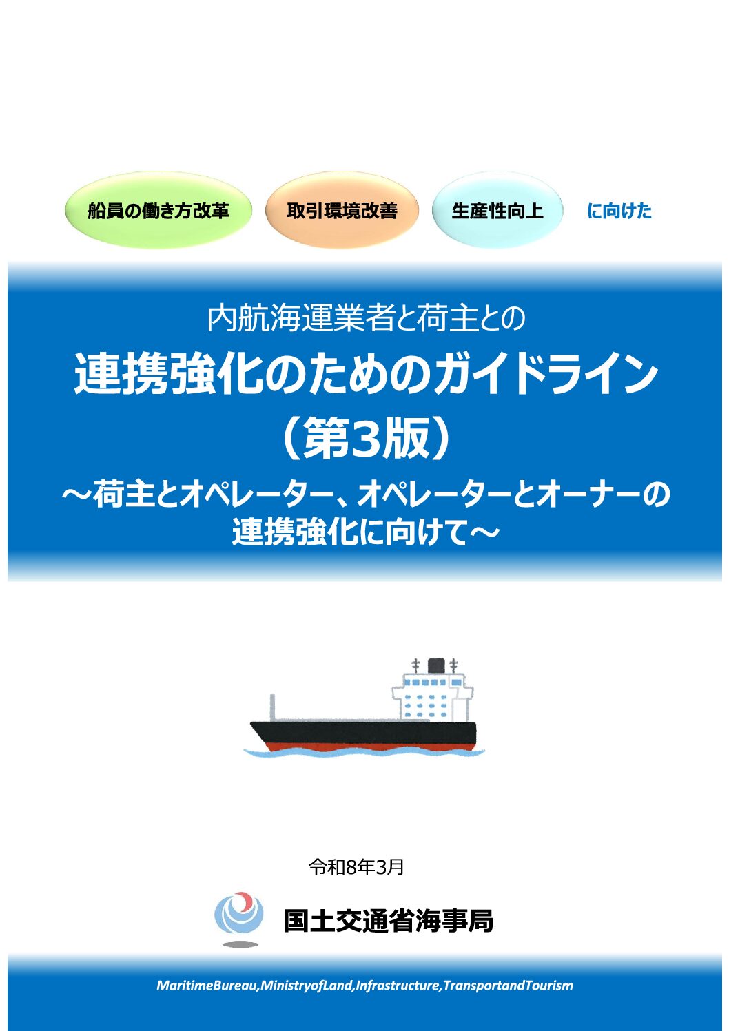 国土交通省等では、今般の中東情勢による燃料価格の高騰を踏まえ、運送受託者との適切な協議による価格決定や燃料サーチャージ制導入など、内航海運業者への価格転嫁を要請しています。