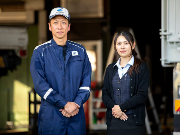平成18年(2006)に20歳で入社し、現場で経験を重ねていった井上さんは、30歳で大きな転機を迎えます。「友人が独立して整備工場を始めるなど、周りに経営者が多くいたこともあり、独立を真剣に考えました」。自らの思いを打ち明けたところ、前代表から「いつかこの会社を任せたい」と予想外の言葉が返ってきました。前代表のお子さんは3人とも女性で自動車整備とは無縁。後継者が見つからなければ、将来的に廃業の可能性もありました。井上さんは「廃業すれば従業員が仕事を失うだけでなく、地域のお客様にもご迷惑が掛かることを懸念し、早めに後継者を決めたかったのでは」と前代表の胸の内を推し量ります。いきなりの後継者指名を受け入れた井上さんは、平成29年(2017)に取締役に就任。「会社経営は夫婦でした方が良い」というアドバイスもあり、奥様の麻美さんを会社に迎え入れるなど、事業承継への準備が始まりました。
