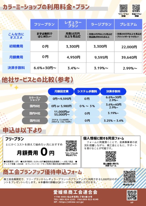 ・フリープラン:月額0円(目標月商10万円以下向け)